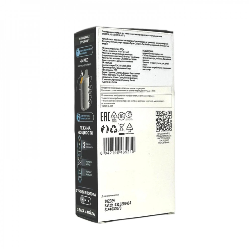 Аромат/вкусЭнергетик + лимон микс БрендWAKA ДисплейДа